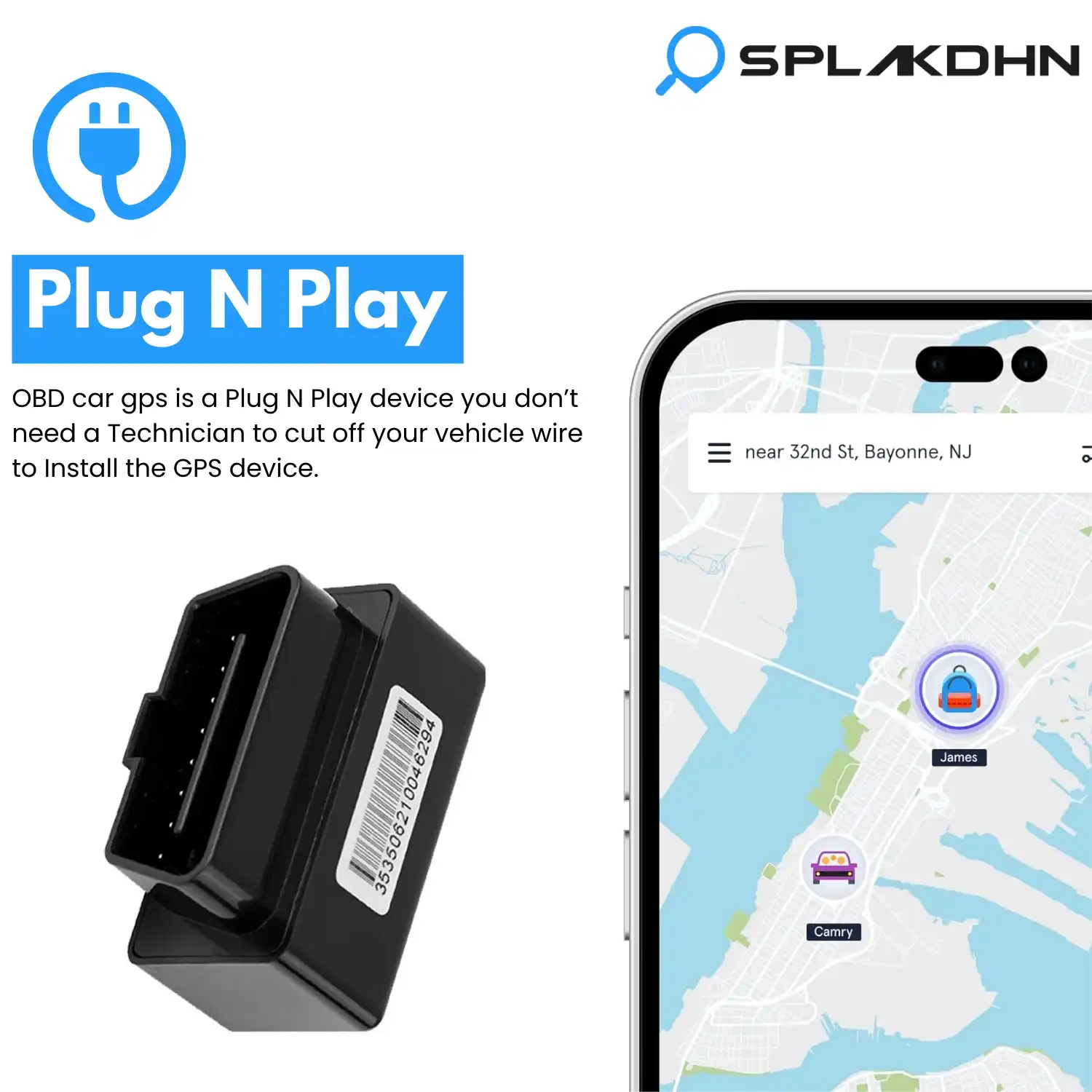 The SPLAKDHN GPS OBD Car Tracker is an advanced plug and play vehicle tracking solution designed for modern cars. Simply connect the device to your vehicle’s OBD port and start monitoring live location, speed, trip routes, and driving behavior instantly.